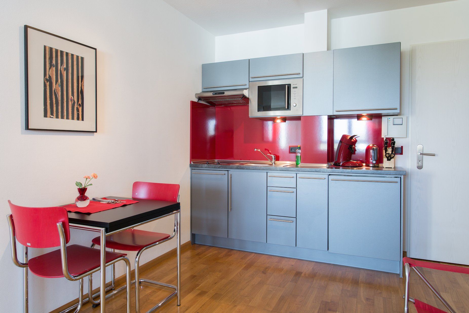 Du wohnst in einer 2-Zimmer-Wohnung mit Balkon im 4. Stock eines ruhig gelegenen Wohnhauses. Auf 57qm erwarten dich zahlreiche Design Elemente sowie antiken Highlights. Du kannst diese Wohnung für bis zu 2 Personen buchen.